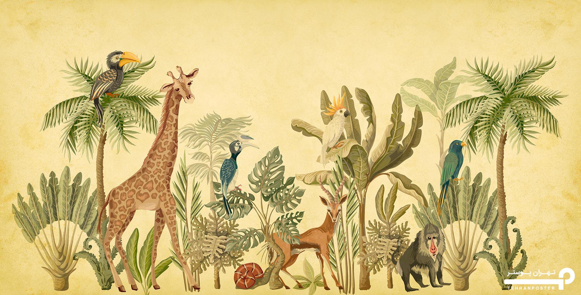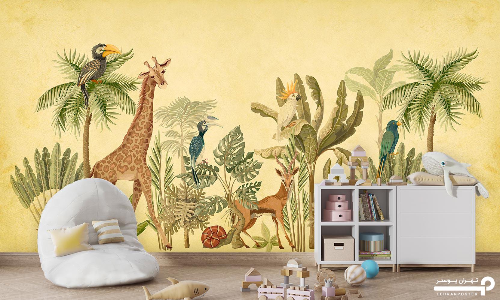 پوستر دیواری اتاق کودک حیوانات جنگل 10023100