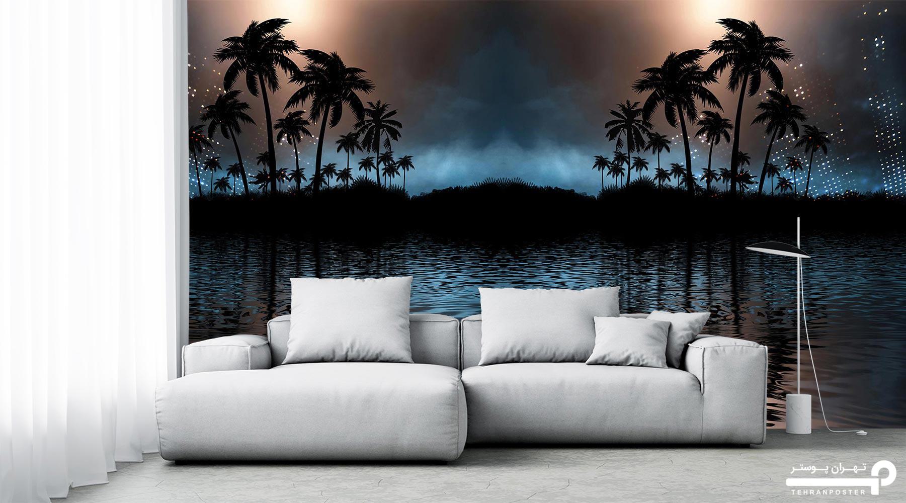 پوستر دیواری دریا و درختان ساحلی 10034500