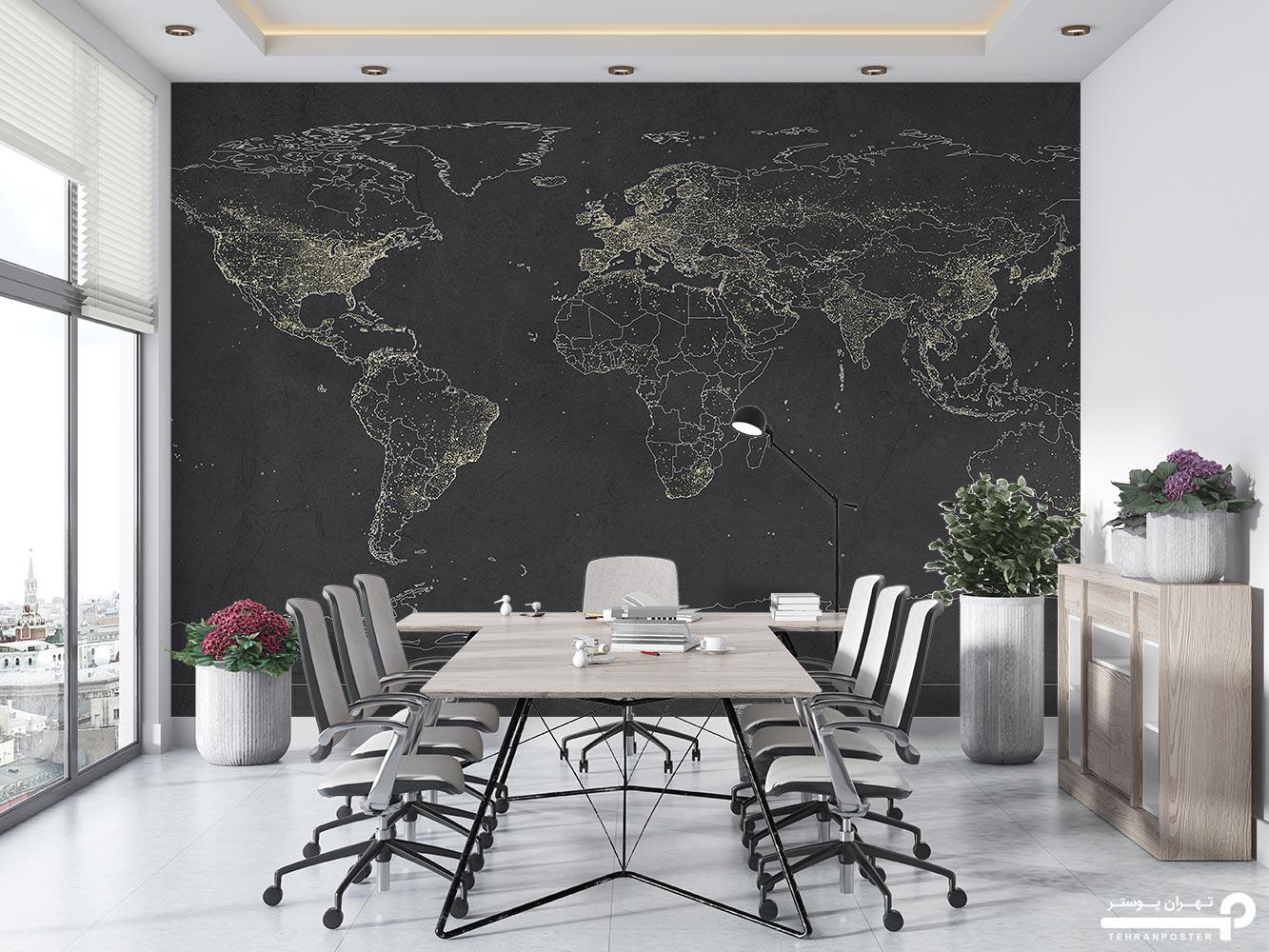 پوستر دیواری نقشه جهان تیره خاص 10129100