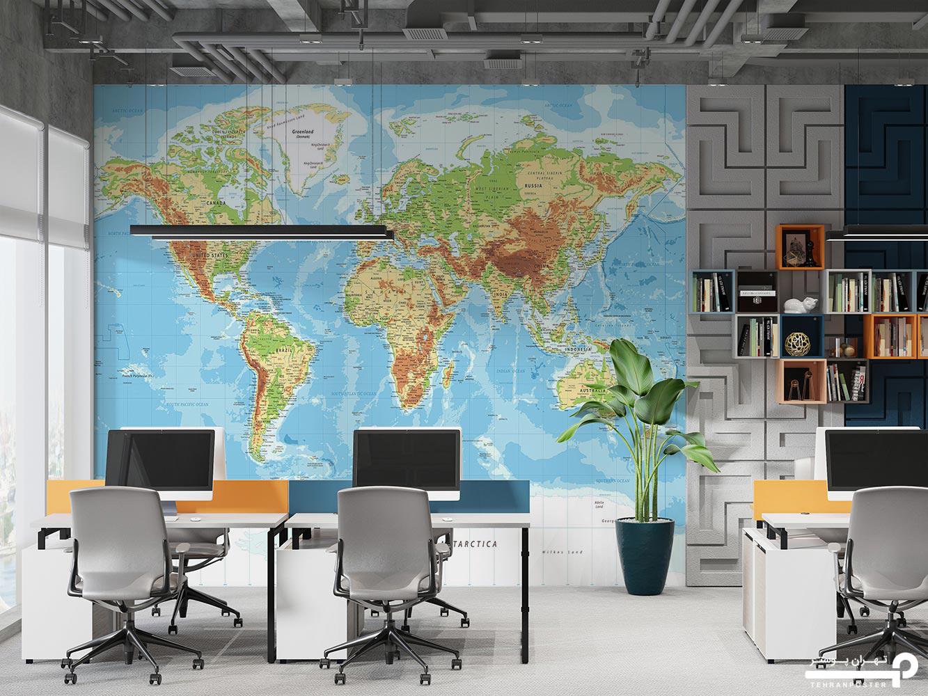پوستر دیواری نقشه جهان رنگی 11024300