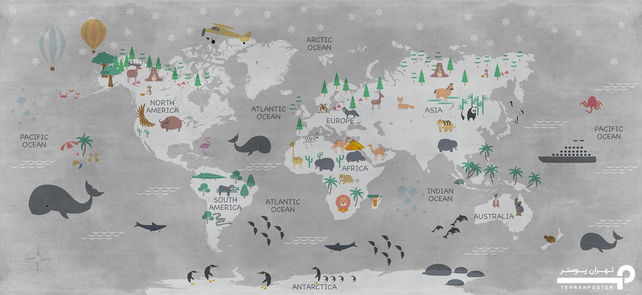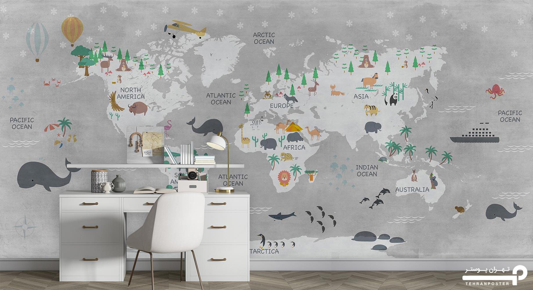 پوستر دیواری نقشه جهان کودکانه 10020400