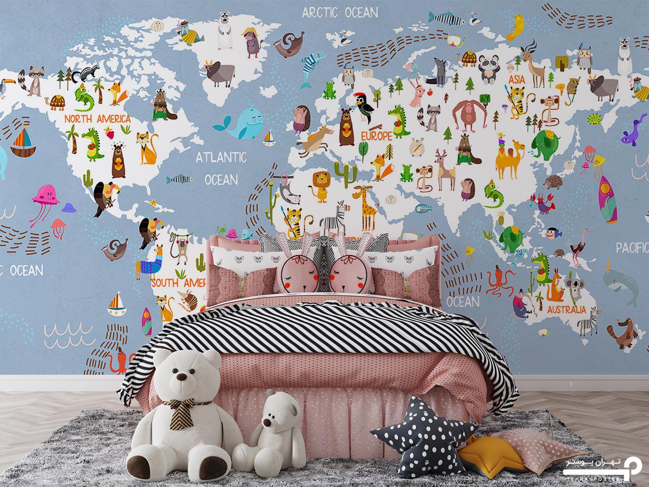 پوستر دیواری نقشه جهان کودکانه 10132300