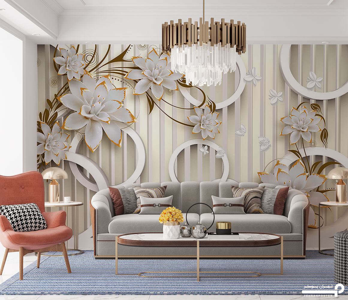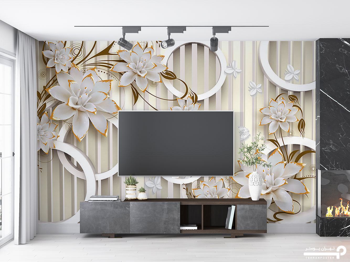 پوستر دیواری پشت تی وی طرح گل سه بعدی کد 13511900