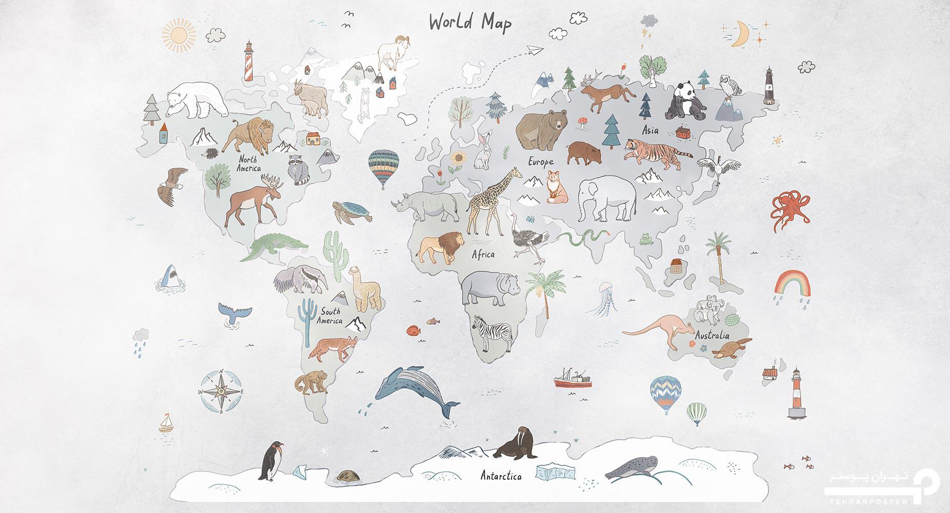 پوستر دیواری کودک نقشه حیوانات 10149700