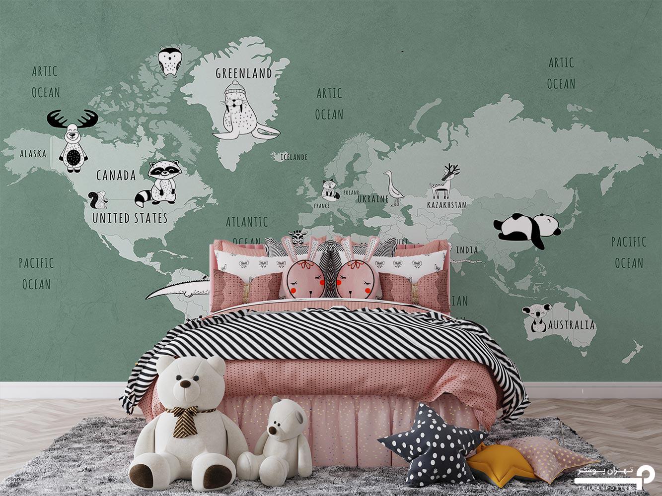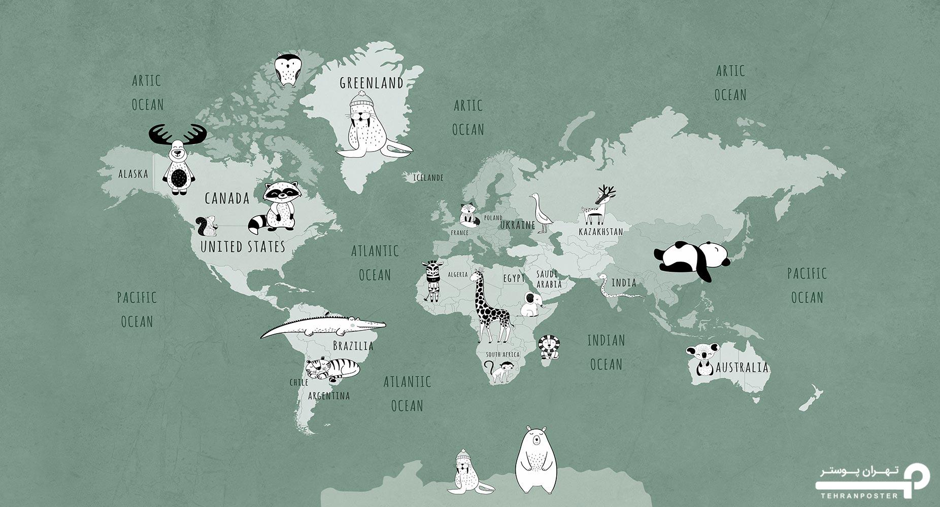 پوستر دیواری کودک نقشه حیوانات 10158700