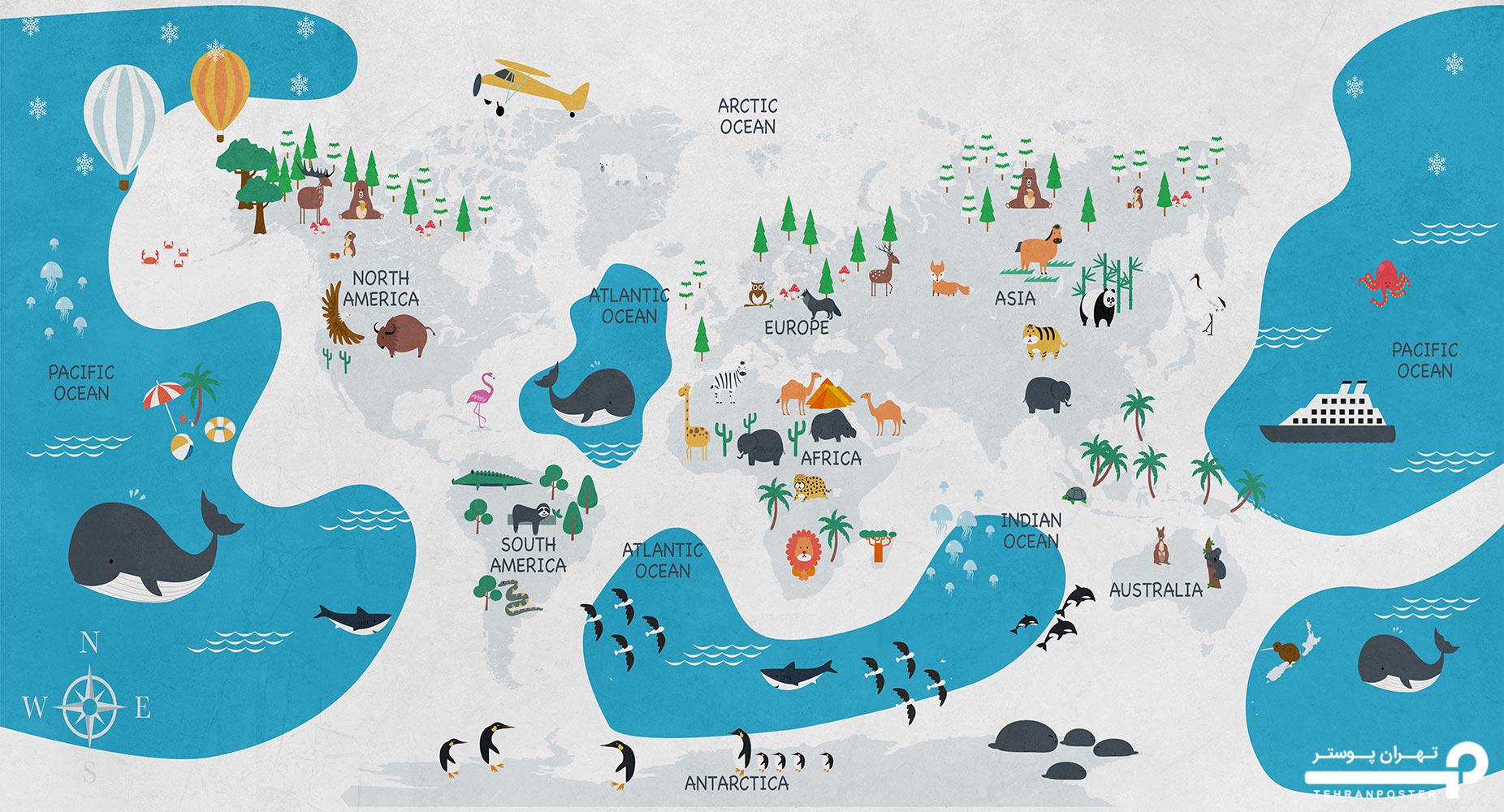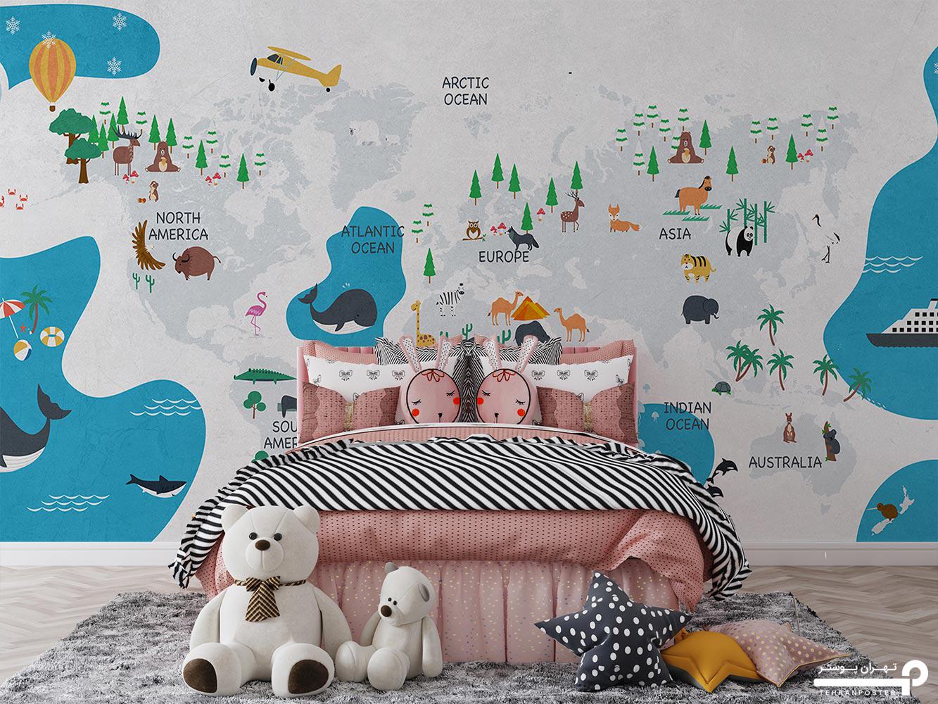 پوستر دیواری کودک نقشه حیوانات 10260400