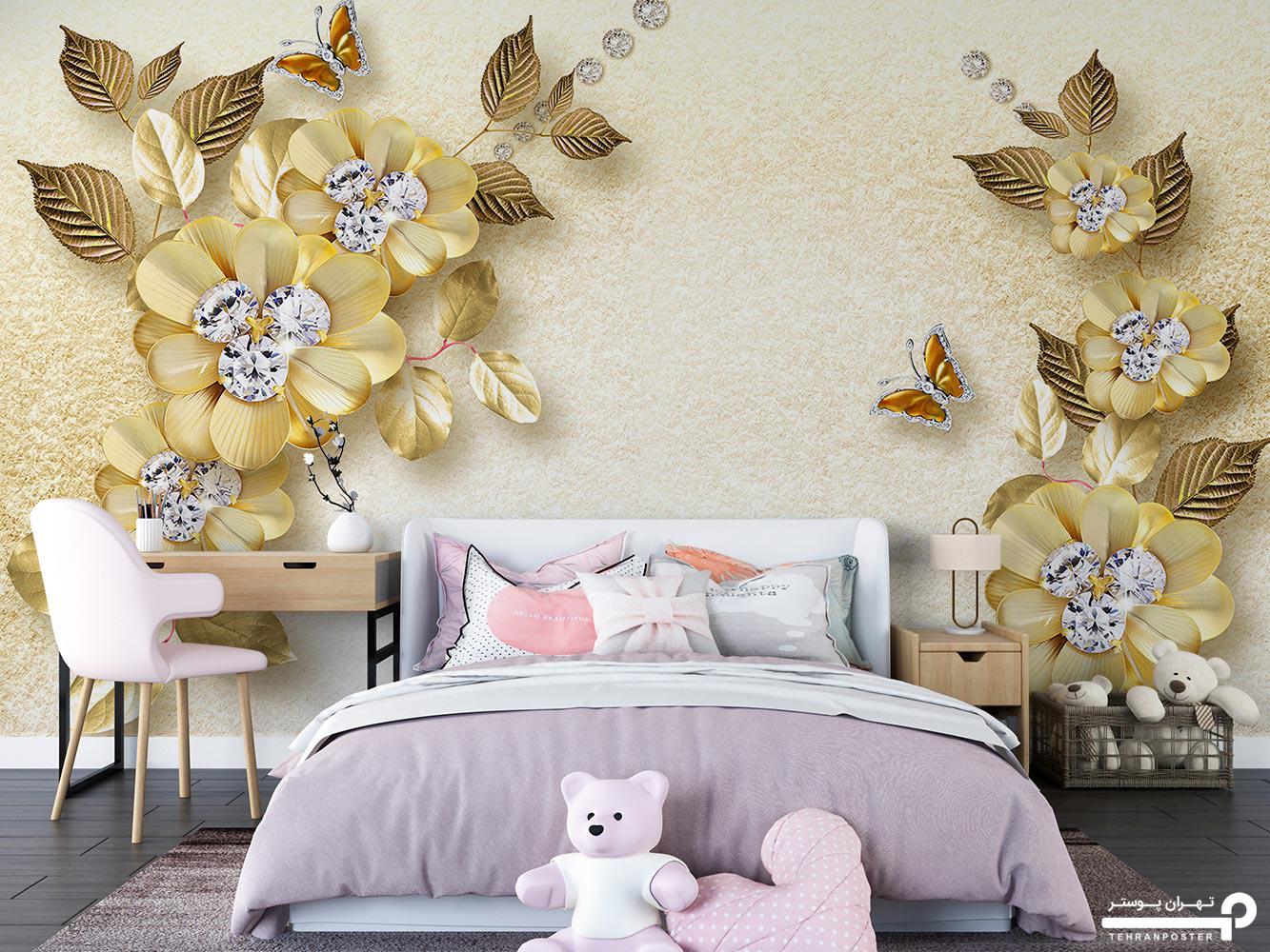 پوستر دیواری گل سه بعدی فانتزی 13011700